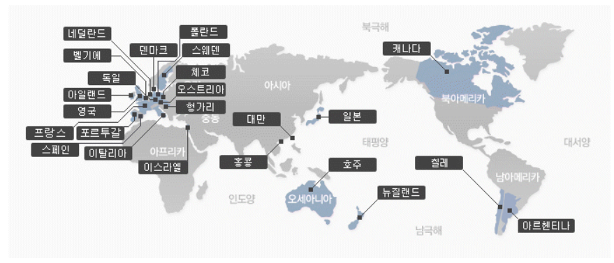 현재 외국인이 한국으로 워킹홀리데이(Working Holiday)로 올 수 있는 국가는 아래와 같습니다.(총 25개 국가)