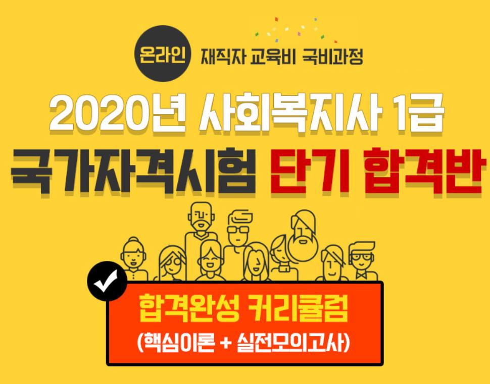 2020년 사회복지사 1급 국가자격시험 단기 합격반 과정을 통해 합격의 길을 제시해 드립니다.