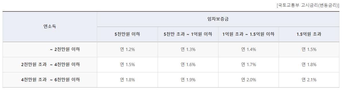 - 한국주택금융공사 주택금융신용보증서 : 0.12%(임차보증금 1억원 이하), 0.15%~0.22%(임차보증금 1억원 초과 ~ 4억원 이하)