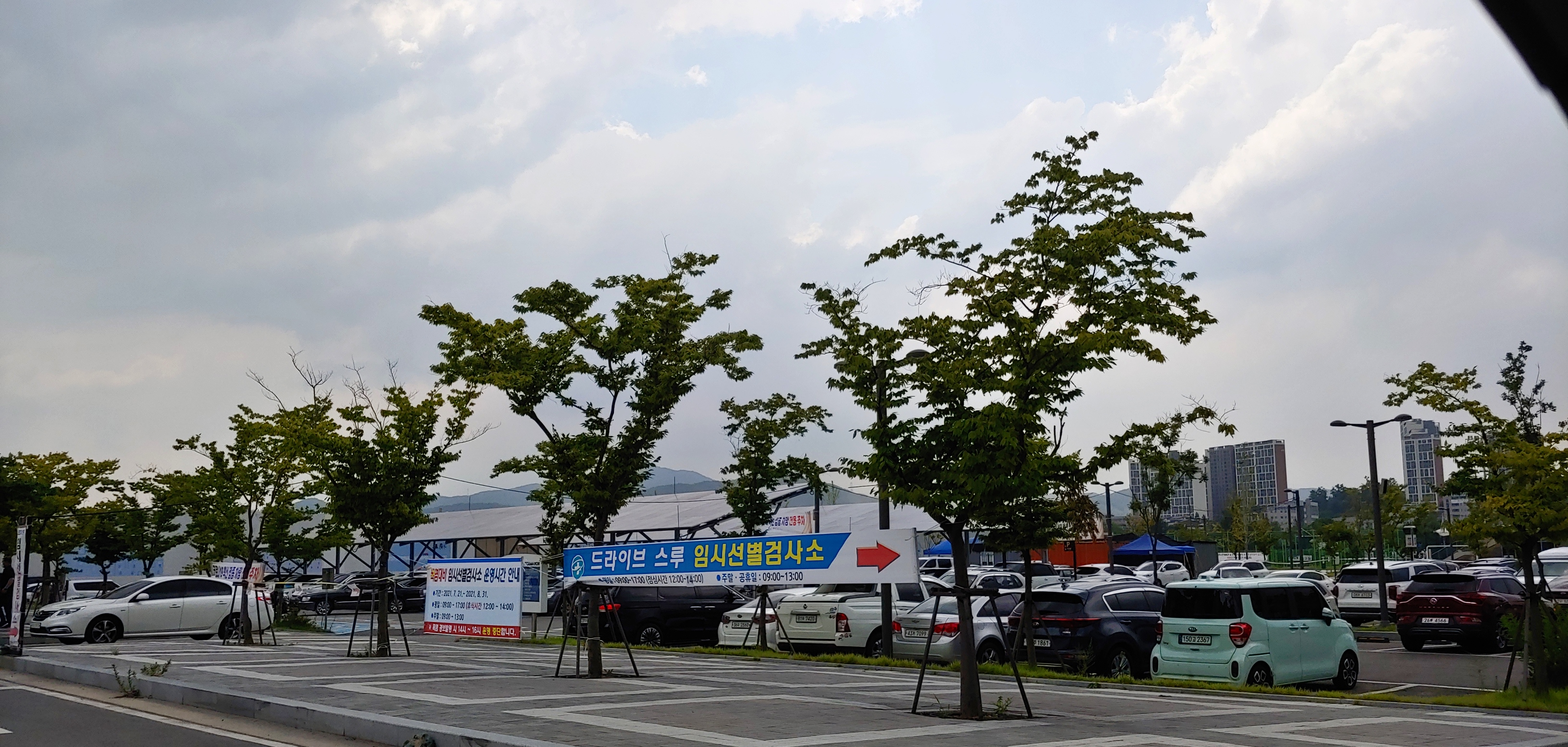 드라이브스루 검사 방식으로 차안에서 이루어지고, 체육관 부지여서 주차장이 넓어서 수요할 수 있는 차량도 많아 다른 검사소 대비 접근성, 편리성, 안정성을 갖춘 곳인 것 같습니다.