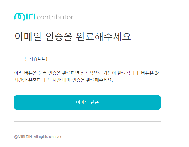 기여자로 회원가입을 완료하면 이메일 인증을 하라고 나오는데 아이디로 적은 이메일에 들어가서 인증을 해주면 완료가 됩니다.