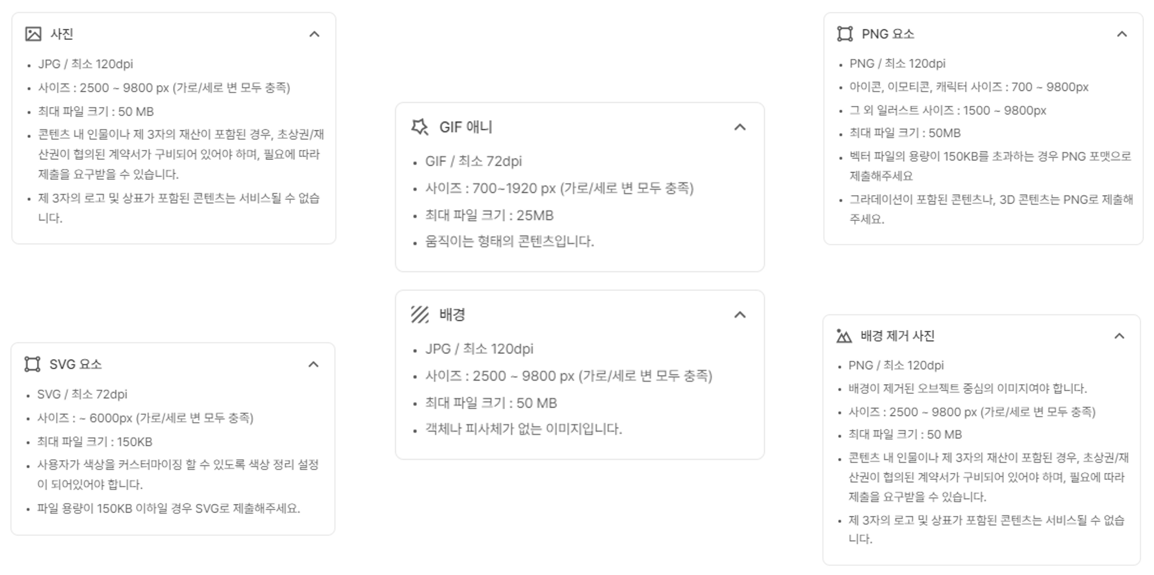 업로드 할 수 있는 파일 유형은 JPG, PNG, JPEG, SVG, GIF 파일 형식입니다.
