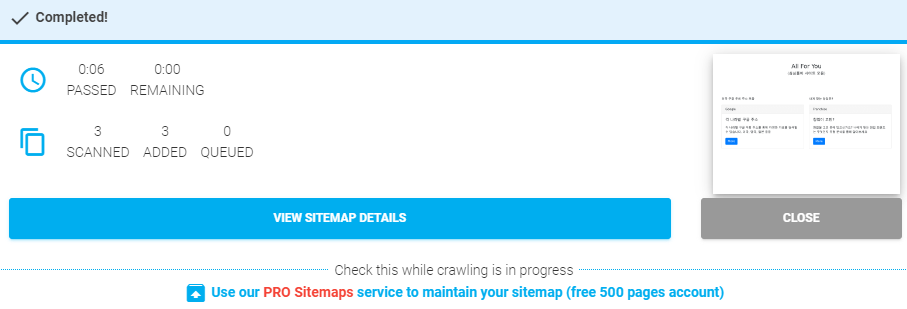 위와 같이 사이트 분석이 끝나면 정보를 표시해 주는데요 'VIEW SITEMAP DETAILS'를 클릭해 주세요.